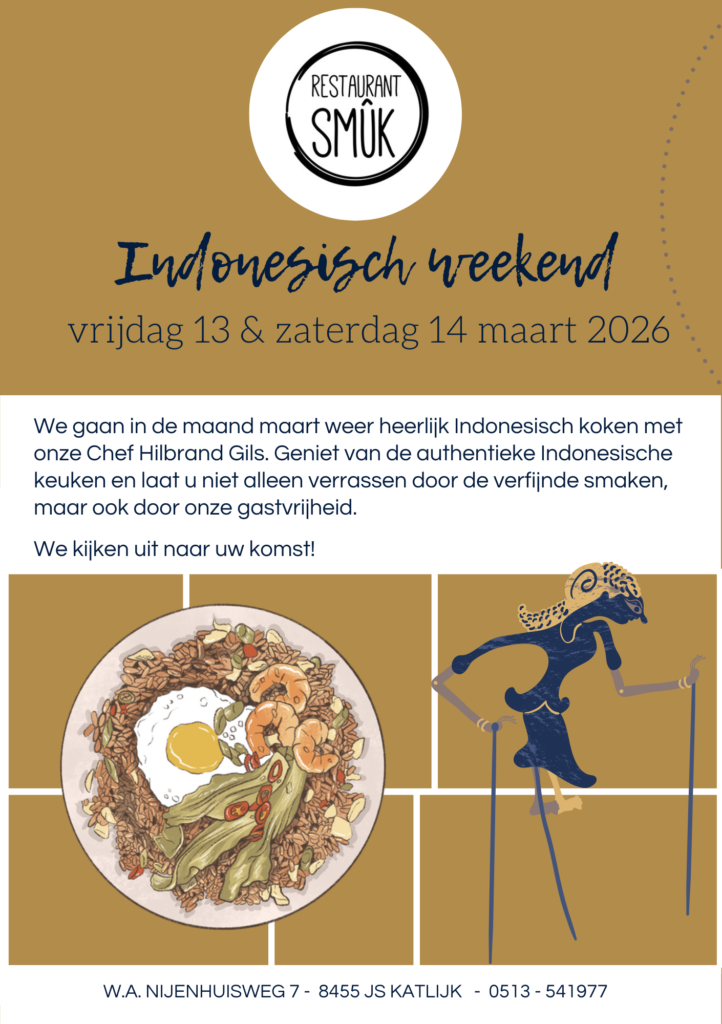 We gaan dit keer weer heerlijk Indonesisch koken met onze Chef Hilbrand Gils. Geniet van de authentieke Indonesische keuken en laat u niet alleen verrassen door de verfijnde smaken, maar ook door onze gastvrijheid.